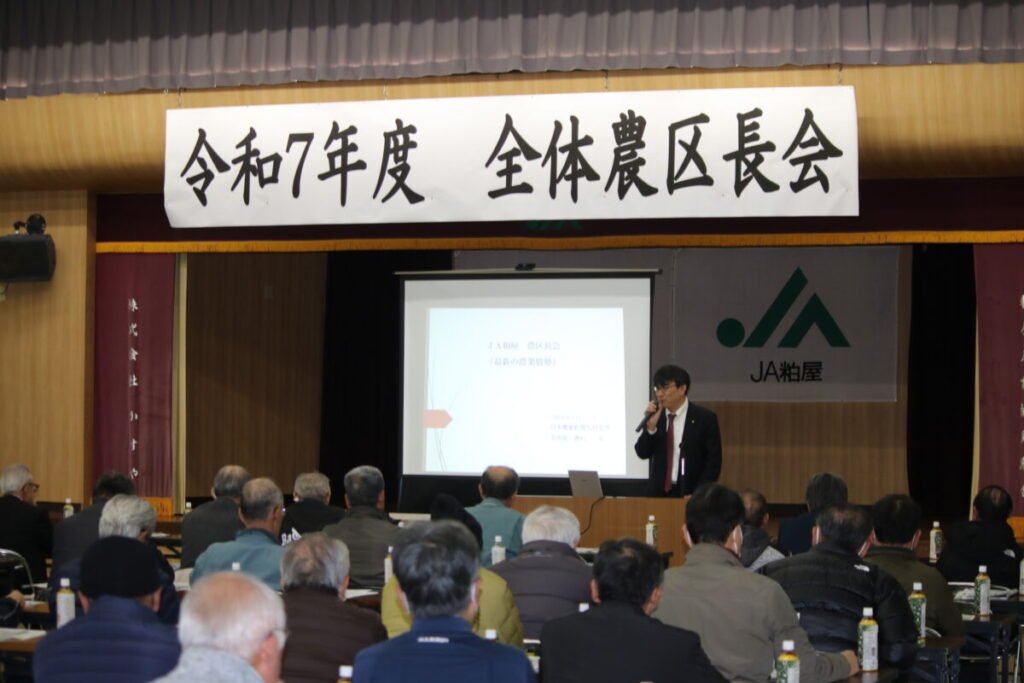 参加した農区長からは、「国の政策動向を体系的に学ぶことができ、今後の営農を考える上で非常に参考になった」「厳しい情勢の中でも、地域農業の役割と可能性を再認識する機会となった」といった声が聞かれました。物価高騰や人手不足など課題が山積する中、正確な情報を共有し、地域全体で対応していくことの重要性を改めて感じる研修会となりました。
