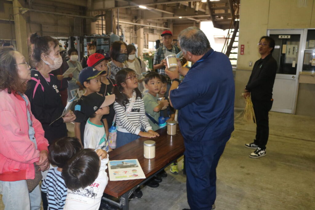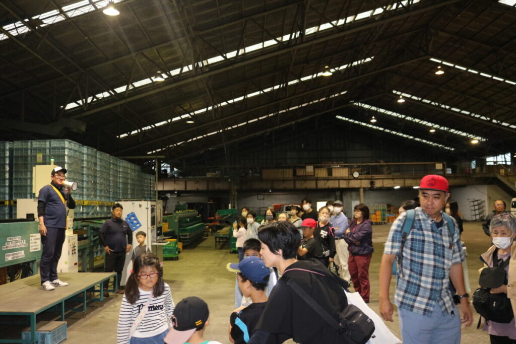 カントリーエレベーターでは、白米に精米されるまでの工程の説明を受け、選果場では、みかんの選別方法の説明を受けて、それぞれ施設を見学しました。
