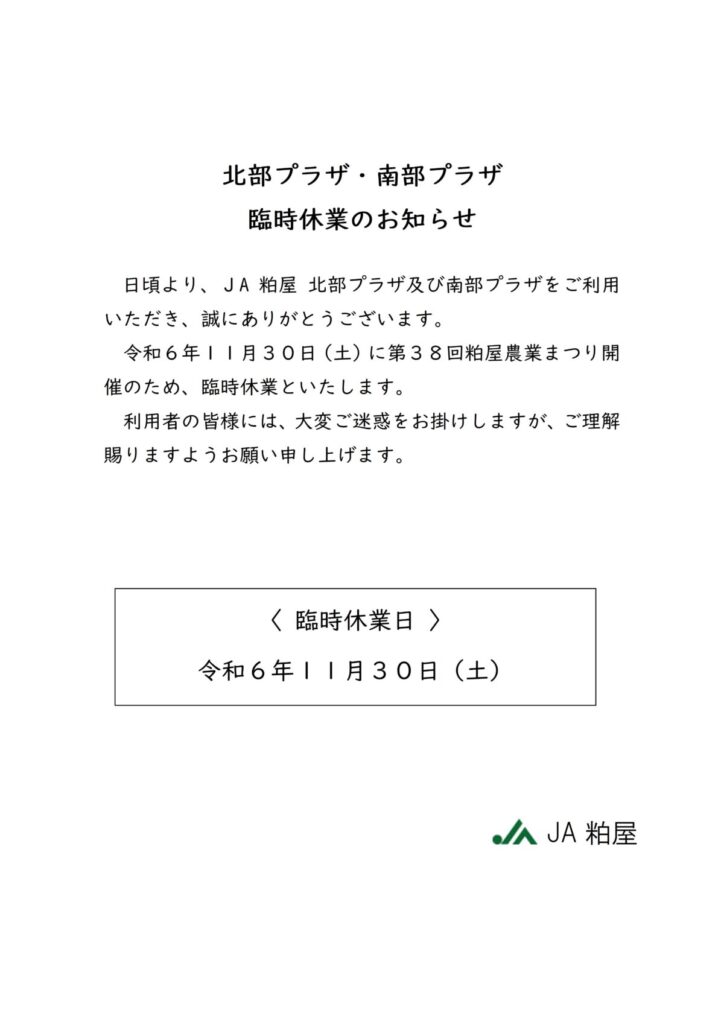 北部プラザ・南部プラザ 臨時休業のお知らせ