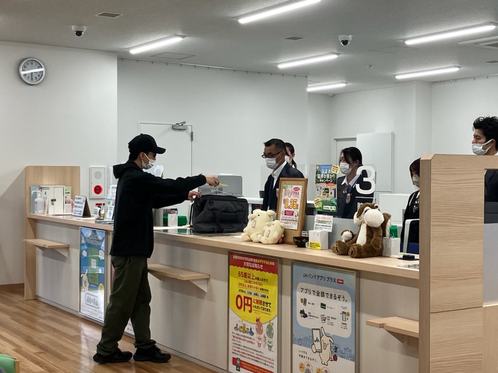 訓練の内容は、「JA粕屋久山支所に、刃物を所持した強盗犯人2名が入店し、窓口に対し現金収納バッグを渡して現金を要求し、そのまま逃走。