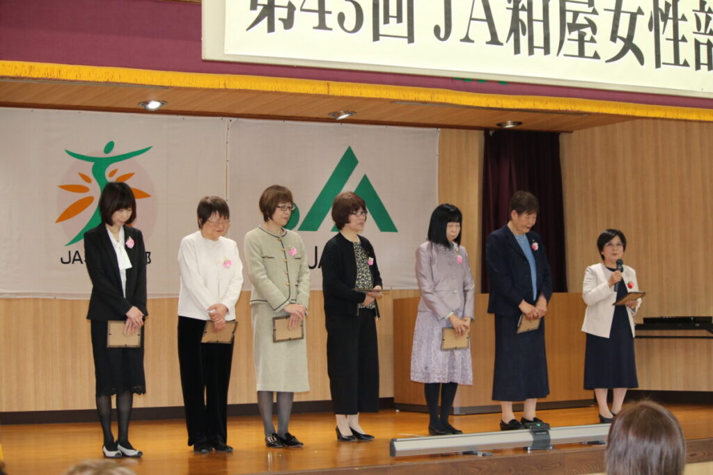 総会では、議事の承認のほか、前女性部横大路恵子部長をはじめ7名の役員へ感謝状の贈呈や新役員の紹介が行われ、令和7年度のスローガンの採択がなされました。