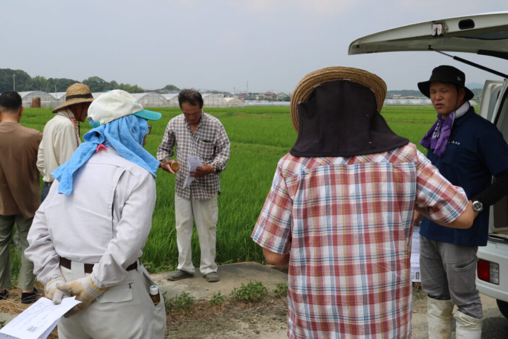 JA粕屋は7月1日から14日まで、準早期米水稲(夢つくし)生産農家を対象にJA管内29ヶ所で現地指導会を開催しました。