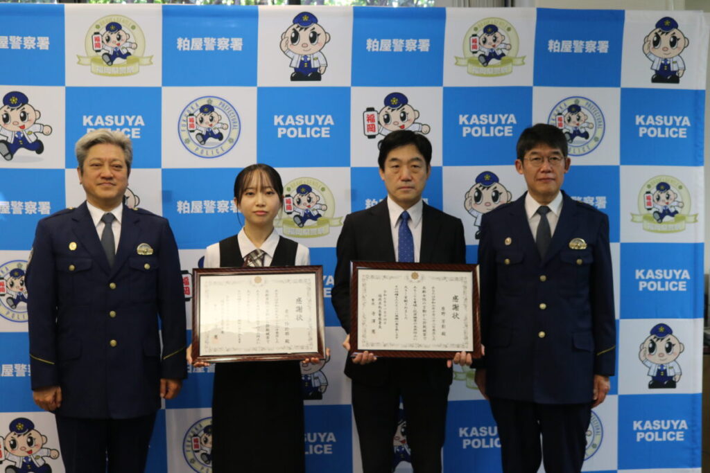 11月14日詐欺の被害を未然に防いだとして、粕屋農協新宮支所の香川 怜於那さんが、粕屋警察署長より感謝状を受け取りました。