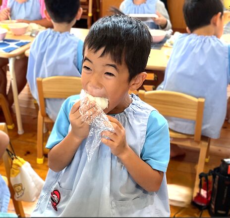 今回園児がおにぎりパーティーで食べた夢つくしは同園にて5月に行われた泥んこになりながらの田植えに始まり、9月の稲刈りでは、刈り取った稲を一生懸命に園児が運んだ思い入れのあるお米となりました。